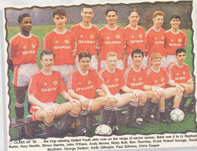 1992年のマンチェスターユナイテッドユースチームでの写真